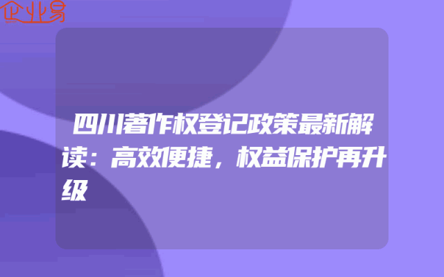 - 四川著作权登记政策最新解读:高效便捷,权益保护再升级一、前言随着科技的不断发展与创新,知识产权保护显得愈发重要。四川作为西部大省的科技创新力量日益壮大,对于著作权保护的需求也日益增长。近期,四川省出台了一系列著作权登记政策,旨在提高登记效率