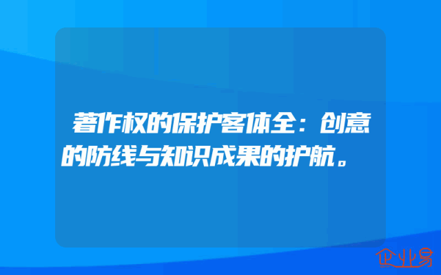 - 著作权的保护客体全:创意的防线与知识成果的护航。