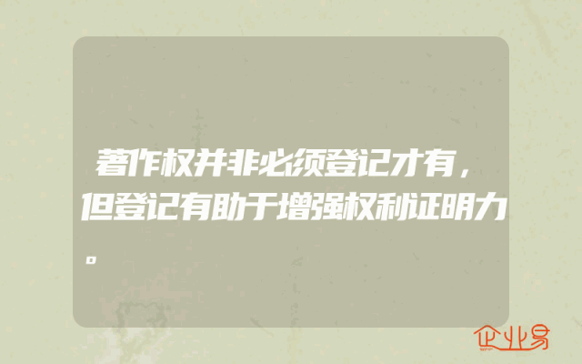 - 著作权并非必须登记才有,但登记有助于增强权利证明力。