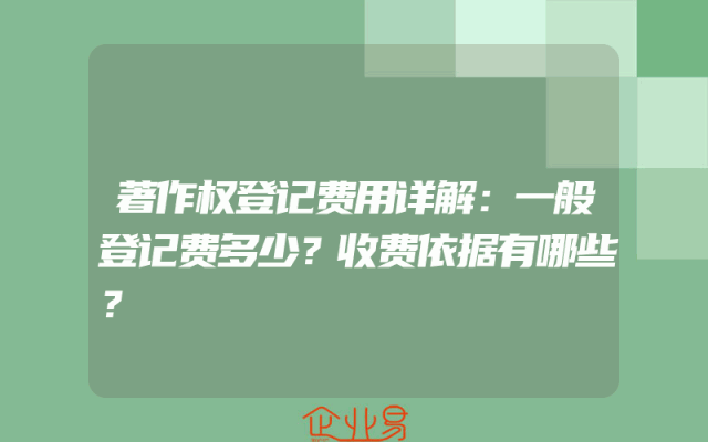 - 著作权登记费用详解:一般登记费多少?收费依据有哪些?