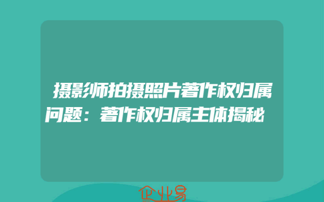 - 摄影师拍摄照片著作权归属问题:著作权归属主体揭秘