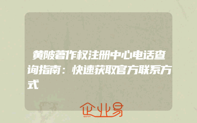 - 黄陂著作权注册中心电话查询指南:快速获取官方联系方式