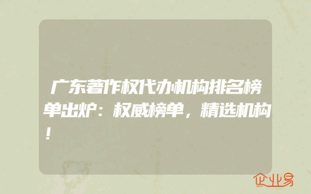 - 广东著作权代办机构排名榜单出炉:权威榜单,精选机构!