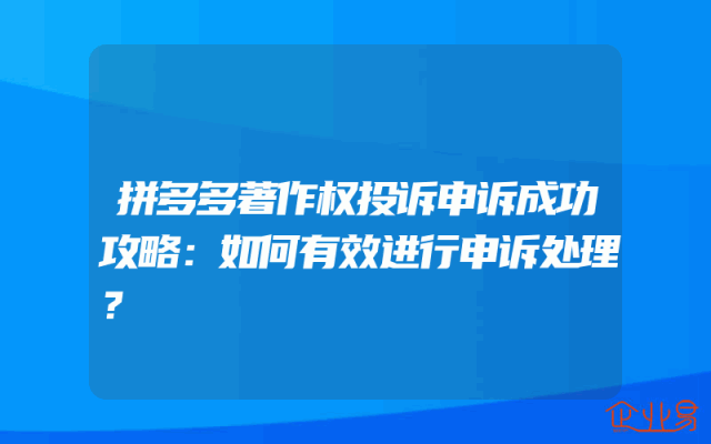 - 拼多多著作权投诉申诉成功攻略:如何有效进行申诉处理?