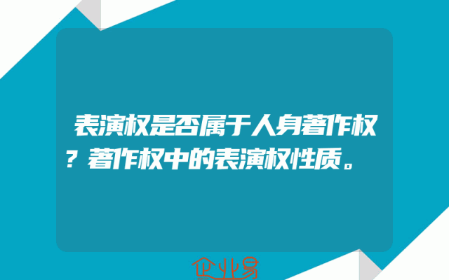 - 表演权是否属于人身著作权?著作权中的表演权性质。