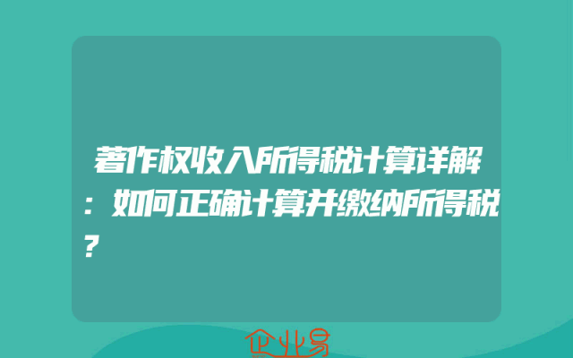 - 著作权收入所得税计算详解:如何正确计算并缴纳所得税?