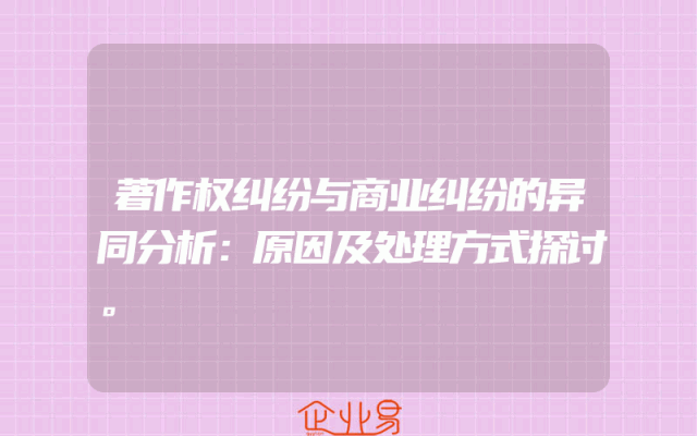 - 著作权纠纷与商业纠纷的异同分析:原因及处理方式探讨。