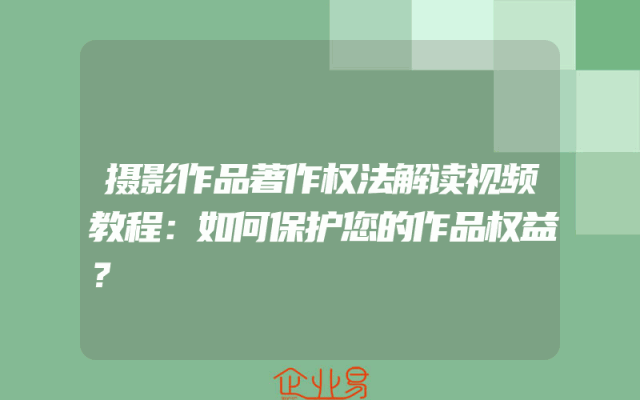 - 摄影作品著作权法解读视频教程:如何保护您的作品权益?