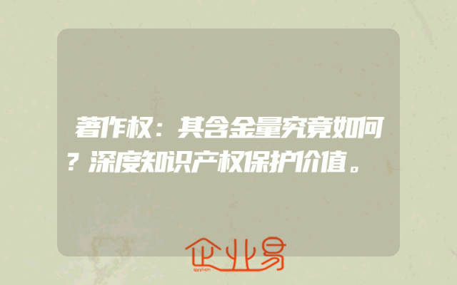 - 著作权:其含金量究竟如何?深度知识产权保护价值。
