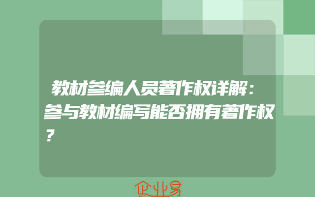 - 教材参编人员著作权详解:参与教材编写能否拥有著作权?