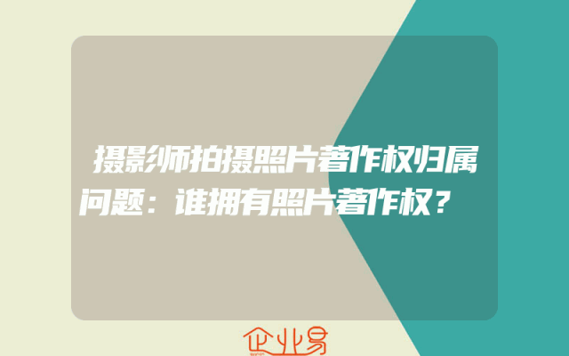 - 摄影师拍摄照片著作权归属问题:谁拥有照片著作权?