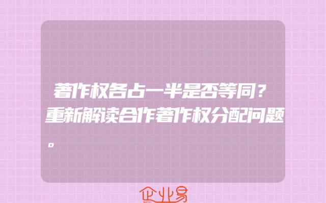 - 著作权各占一半是否等同?重新解读合作著作权分配问题。