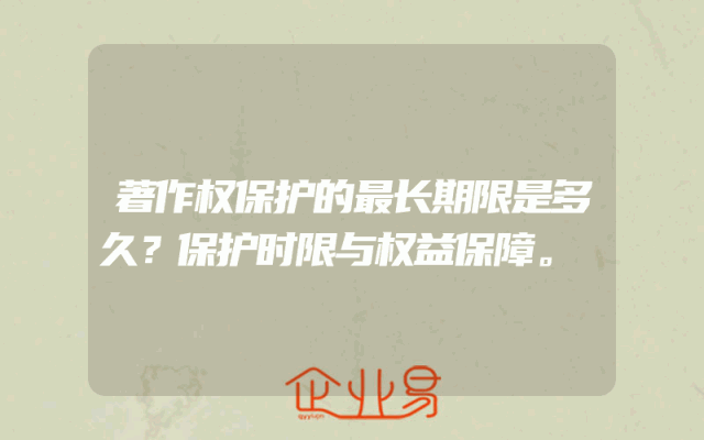 - 著作权保护的最长期限是多久?保护时限与权益保障。