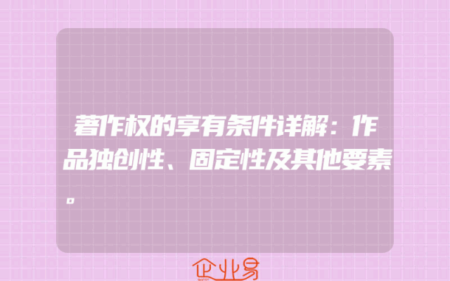 - 著作权的享有条件详解:作品独创性、固定性及其他要素。
