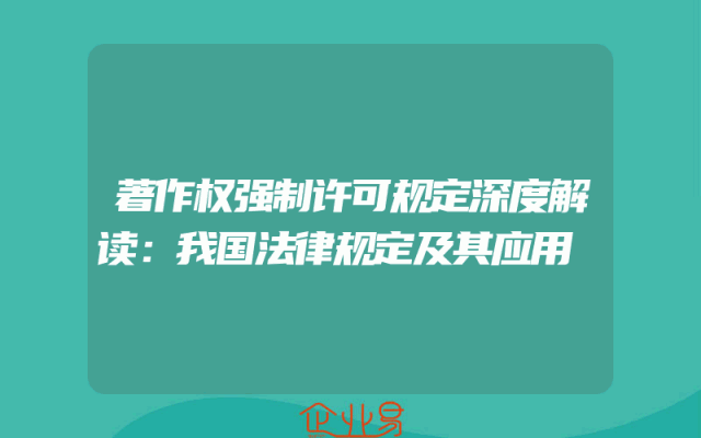 - 著作权强制许可规定深度解读:我国法律规定及其应用