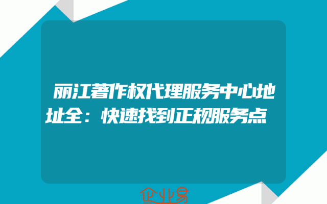 - 丽江著作权代理服务中心地址全:快速找到正规服务点