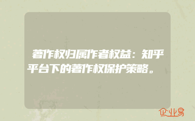 - 著作权归属作者权益:知乎平台下的著作权保护策略。