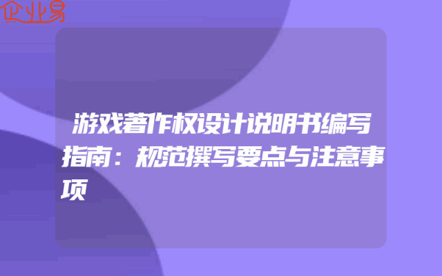- 游戏著作权设计说明书编写指南:规范撰写要点与注意事项