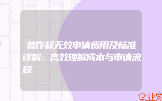 - 著作权无效申请费用及标准详解:高效理解成本与申请流程