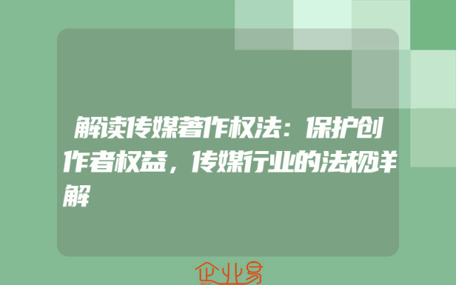 - 解读传媒著作权法:保护创作者权益,传媒行业的法规详解