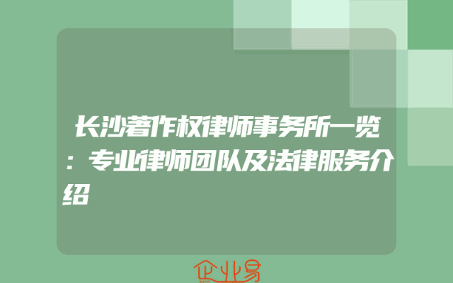 - 长沙著作权律师事务所一览:专业律师团队及法律服务介绍