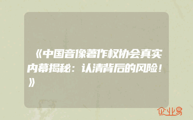 - 《中国音像著作权协会真实内幕揭秘:认清背后的风险!》