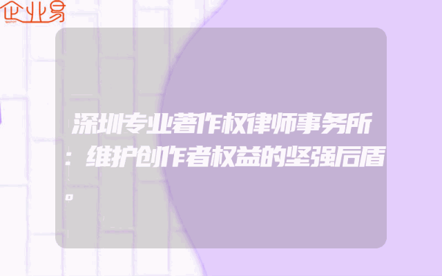 - 深圳专业著作权律师事务所:维护创作者权益的坚强后盾。