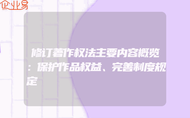 - 修订著作权法主要内容概览:保护作品权益、完善制度规定