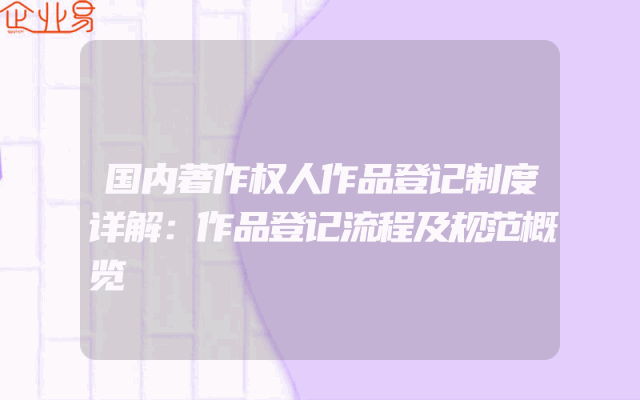 - 国内著作权人作品登记制度详解:作品登记流程及规范概览