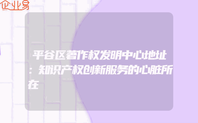 - 平谷区著作权发明中心地址:知识产权创新服务的心脏所在