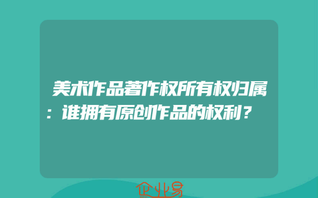 - 美术作品著作权所有权归属:谁拥有原创作品的权利?