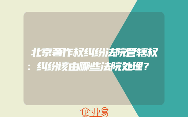 - 北京著作权纠纷法院管辖权:纠纷该由哪些法院处理?