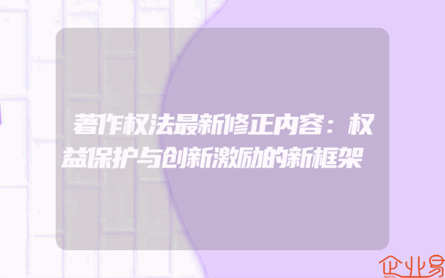 - 著作权法最新修正内容:权益保护与创新激励的新框架