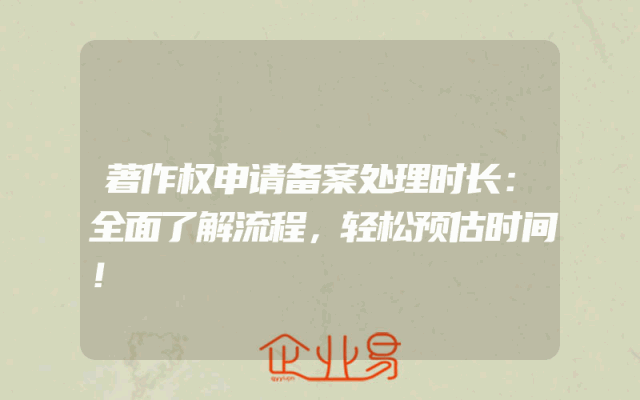 - 著作权申请备案处理时长:全面了解流程,轻松预估时间!