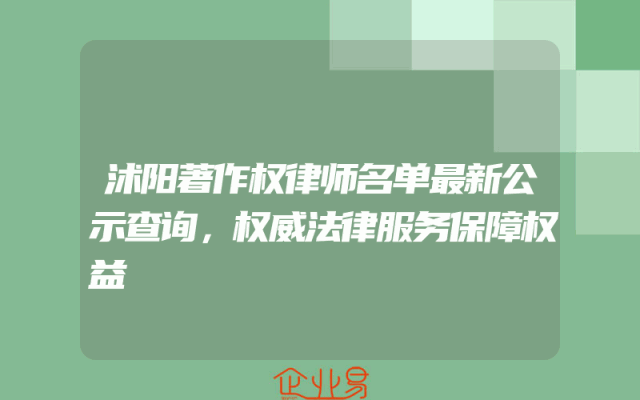 - 沭阳著作权律师名单最新公示查询,权威法律服务保障权益