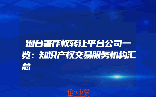 - 烟台著作权转让平台公司一览:知识产权交易服务机构汇总