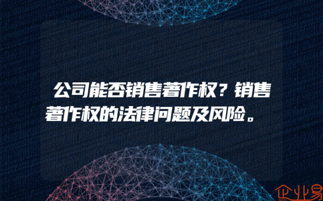 - 公司能否销售著作权?销售著作权的法律问题及风险。
