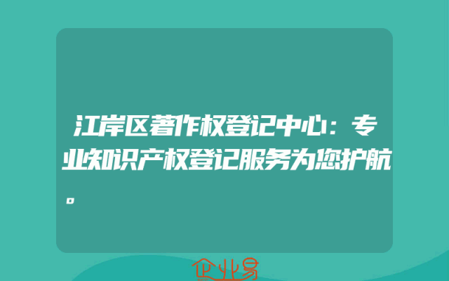 - 江岸区著作权登记中心:专业知识产权登记服务为您护航。