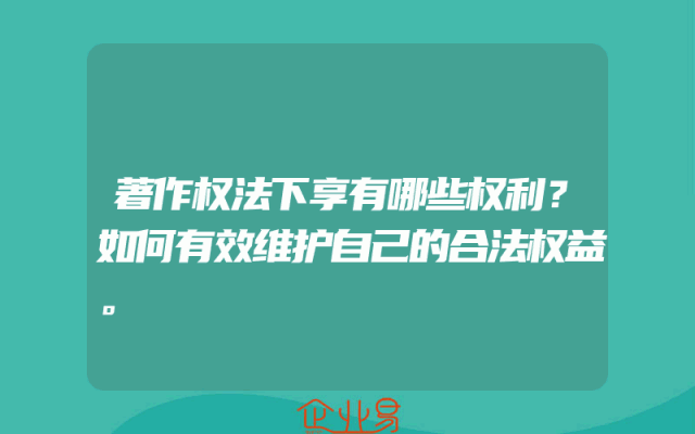 - 著作权法下享有哪些权利?如何有效维护自己的合法权益。