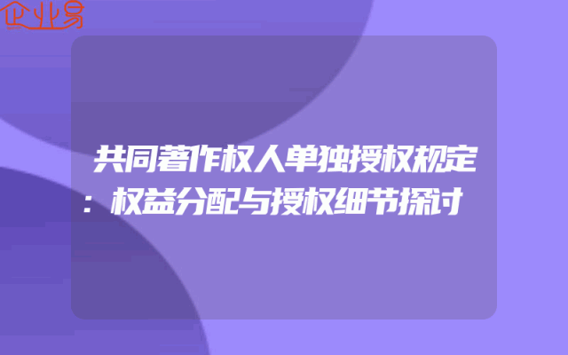 - 共同著作权人单独授权规定:权益分配与授权细节探讨