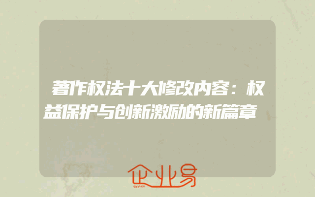 - 著作权法十大修改内容:权益保护与创新激励的新篇章