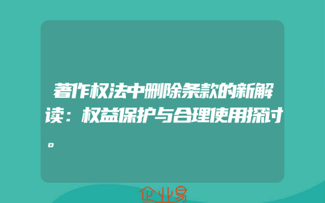 - 著作权法中删除条款的新解读:权益保护与合理使用探讨。