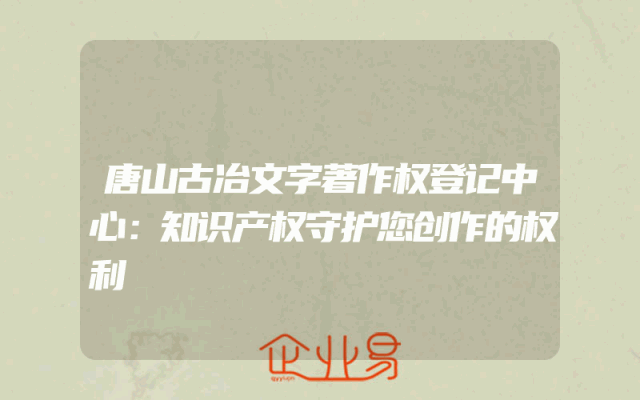 - 唐山古冶文字著作权登记中心:知识产权守护您创作的权利