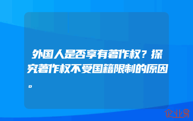 - 外国人是否享有著作权?探究著作权不受国籍限制的原因。