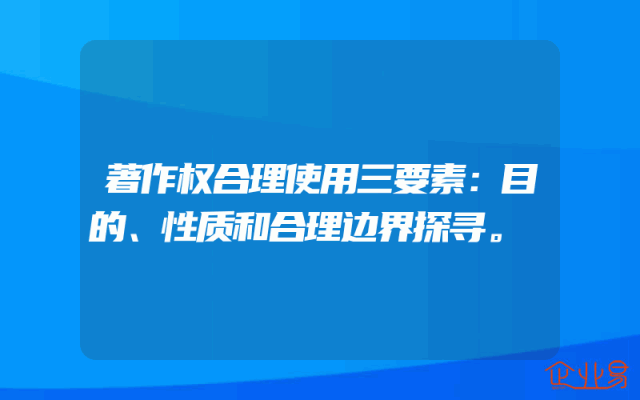 - 著作权合理使用三要素:目的、性质和合理边界探寻。