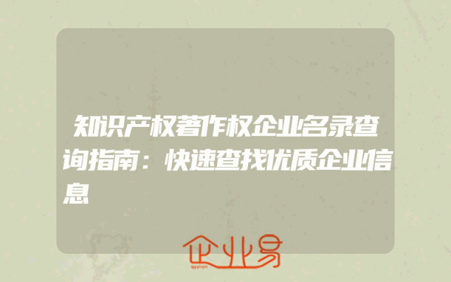 - 知识产权著作权企业名录查询指南:快速查找优质企业信息