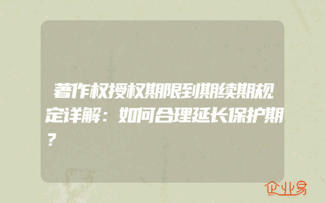- 著作权授权期限到期续期规定详解:如何合理延长保护期?