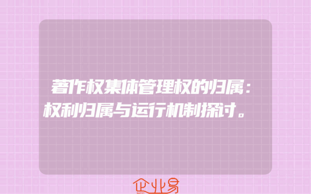 - 著作权集体管理权的归属:权利归属与运行机制探讨。