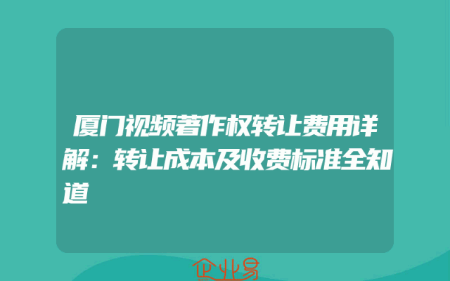 - 厦门视频著作权转让费用详解:转让成本及收费标准全知道