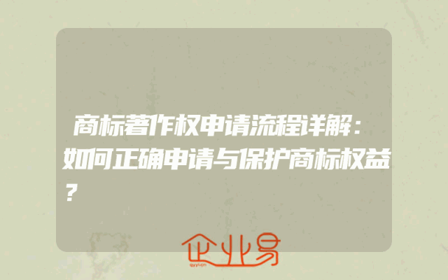 - 商标著作权申请流程详解:如何正确申请与保护商标权益?